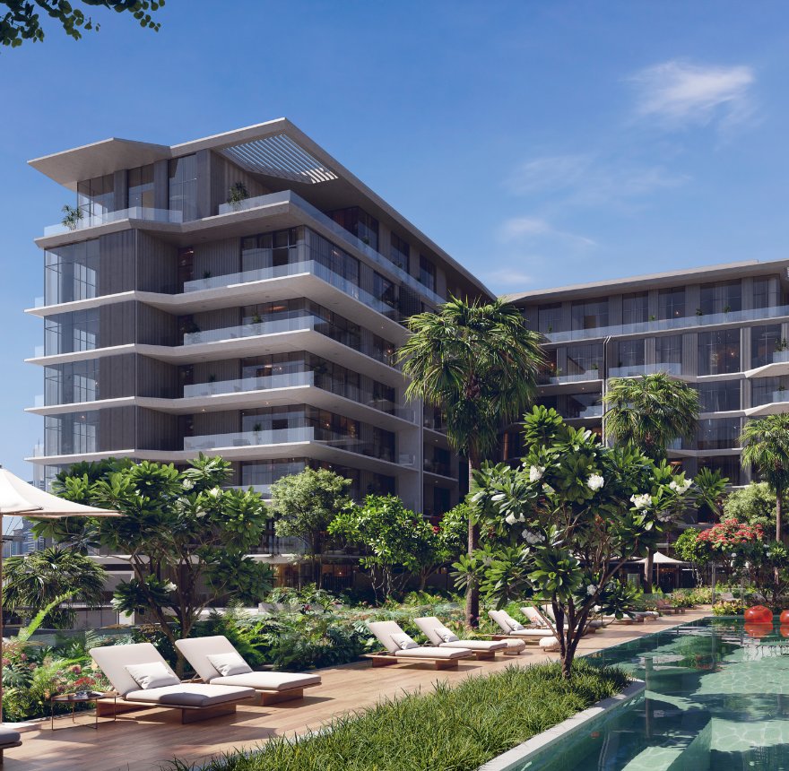 Residents enjoy beautifully crafted living spaces complemented by premium wellness amenities, including infinity-edge swimming pools with sweeping views of the Dubai skyline. Lush landscaping and thoughtfully designed ledges create serene sunbathing spots, inviting moments of relaxation in refreshing waters.